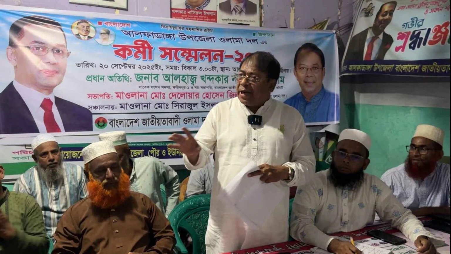 শনিবার (২০ সেপ্টেম্বর) বিকেল সাড়ে ৫টার দিকে ফরিদপুরের আলফাডাঙ্গা উপজেলা ওলামা দলের কর্মী সম্মেলনে প্রধান অতিথির বক্তব্যে তিনি এ কথা বলেন।