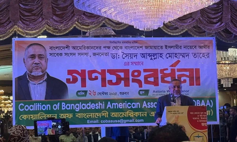 দেশের স্বাধীনতা ও সার্বভৌমত্বের প্রশ্নে কোনো আপস হবে না বলে জানিয়েছেন জামায়াতে ইসলামীর নায়েবে আমির ডা. সৈয়দ আবদুল্লাহ মোহাম্মদ তাহের। এ সময় ভারতের সঙ্গে যুদ্ধের প্রসঙ্গ তুলে তিনি দাবি করেন, ‘আমাদের কমপক্ষে ৫০ লাখ যুবক ভারতের বিরুদ্ধে স্বাধীনতার যুদ্ধ করবে।’ শনিবার (২৭ সেপ্টেম্বর) যুক্তরাষ্ট্রের নিউইয়র্কে বাংলাদেশ আমেরিকান অ্যাসোসিয়েশনের (কোবা) উদ্যোগে আয়োজিত গণসংবর্ধনা অনুষ্ঠানে তিনি এসব কথা বলেন। ডা.তাহের বলেন, ‘অনেকে …